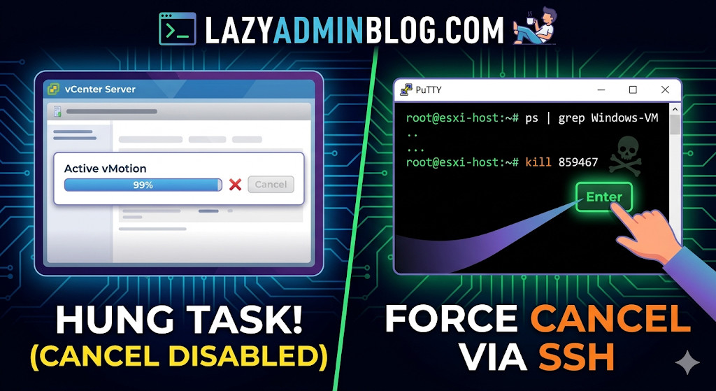 Weโve all been there: a vMotion hits 99% and just… stays there. Or a backup job finishes on the proxy side, but vCenter still thinks the VM is “busy.” Usually, the Cancel button is grayed out, leaving you stuck in management limbo.