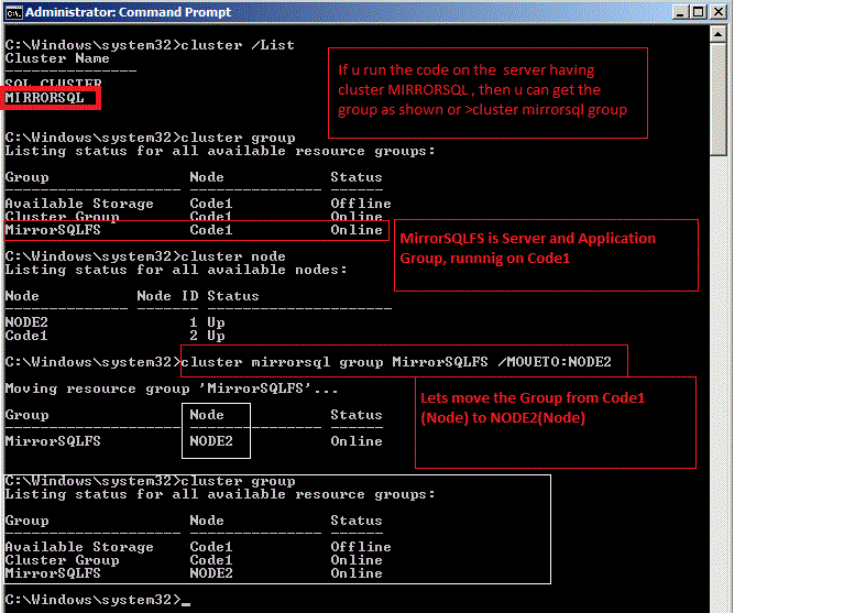 - On the File menu, click Move Group.On a multinode cluster server, when using Move Group, select the node to move the group to.